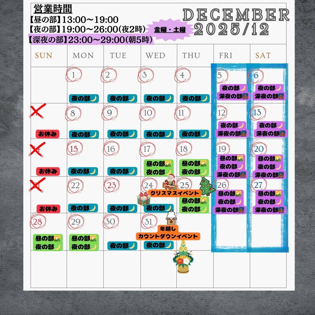 3月19日(水) 【13時〜19時】昼の部 【19時〜26時】夜の部 で営業します! 来店予定の方はこの投稿の「返信」を押して、 ツリー状に書込みお願いします! ・来店予定の人数 ・性別 ・来店予定の時間帯 ↑この3点については必ずご記入いただきますよう ご協力よろしくお願いいたしますm(_ _)m